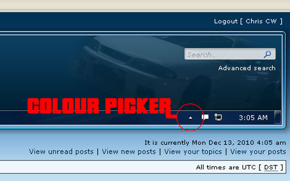 You can now use a colour picker to choose either blue, black, red, green, pink or purple themes for the site. Just click this arrow at the top right of the page to expand the colour menu (requires javascript);